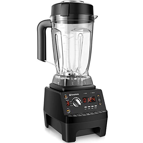 The Vanaheim Professional Blender features smart and sleek design, coming with outstanding performance 2.25HP of professional Power. It handles even heavy pulverizing tasks with ease, and the double housing design keeps operation quiet. The 60 oz. BPA-free Tritan jar sits in a heavy-duty plastic base and is uniquely designed for easy pouring, with a soft-touch handle for a secure grip. This blender operates at the touch of a button, with Low Med and High speeds, Pulse and 9 pre-programmed Presets Included Smoothie and Ice Crush options.