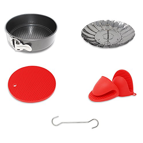 5 Piece Instant Pot Accessories Set, Bundle Includes High Carbon Springform Pan, Stainless Steel Steamer Basket, Silicone Baking Mat, Silicone Mitts & Safety Tool, Fits 6qt and 8qt Instant-pot