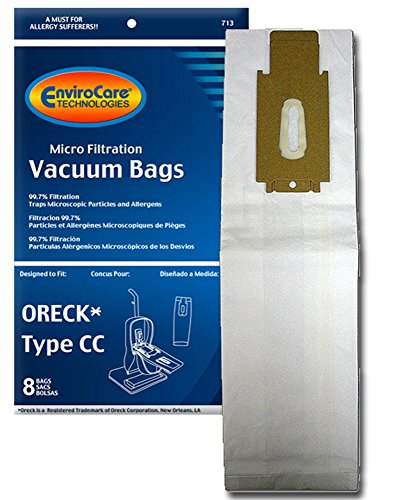 EnviroCare brand vacuum bags designed to fit Oreck CC and XL upright vacuum cleaners. Will fit newer and older model Oreck XL and CC vacuums. 8 Micro filtration bags to trap fine dust particles.Replace often to ensure your machine peak performance.