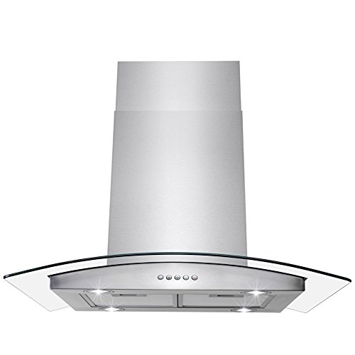 - PREMIUM POWER: The island mount hood has a powerful 194W motor that will suck any steam or smoke from cooking. The range hood has 3 speed levels through which you can choose the intensity of the air suction.