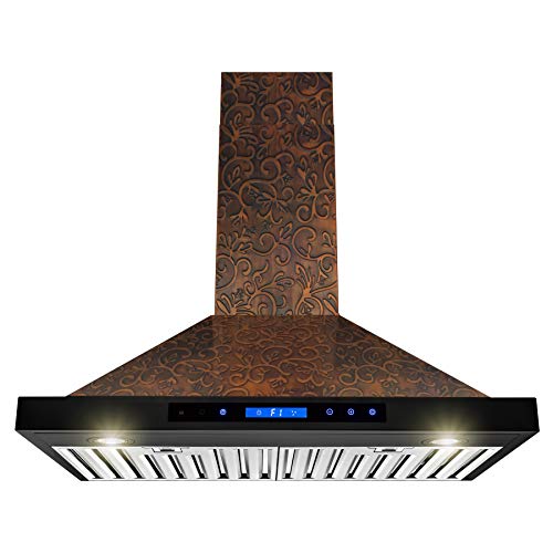 AKDY Wall Mount Range Hood -30″ Embossed Copper Hood Fan for Kitchen – 4-Speed Professional Quiet Motor – Premium Touch Control Panel – Elegant Vine Design – Baffle Filter & Halogen Lamp