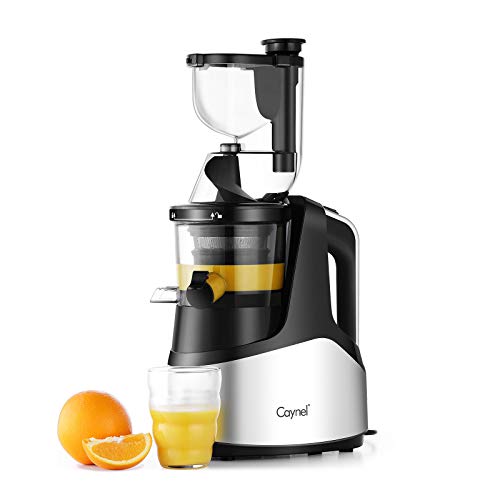 Caynel Slow Masticating Juicer Cold Press Extractor with 3″ Wide Chute for Fruits, Vegetables and Herbs, Quiet Durable Motor with Reverse Function, Smoothie Strainer Included, High Yield Vertical Juicer Easy Cleaning , BPA Free, Silver