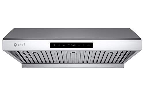 Chef Range Hood PS10 30” Pro Performance Under Cabinet Kitchen Extractor | Stainless Steel Electric Stove Ventilator | 3 Speed 900 CFM Exhaust Fan with Bright LED Lights & Delay Auto Shut-Off