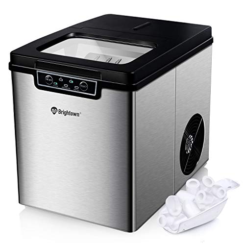 - 🍺【Smart & Practical】The transparent window design on the top of the countertop ice maker allows process monitoring and ice level inspection. The digital display is a great indicator of time and operating conditions, warning lights and auto-shutdown functions to prevent spillage when the ice basket is full or when water needs to be added, which is user-friendly and practical.