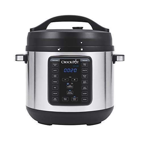 The Crock-pot 8 quart express crock XL programmable Multi-Cooker can cook meals at a fraction of the time that traditional cooking requires. It’s a versatile, compact appliance that lets you serve nutritious, home-cooked meals for families or parties of 10 people or more. Thanks to convenient one-touch settings for various pressure-cooked meals, You can choose to eat sooner, or you can use the slow cook setting to come back later to a delicious, hot meal. You can also steam, Brown, saute, simmer, boil, or use the manual pressure setting, making one-pot meals easier than ever.