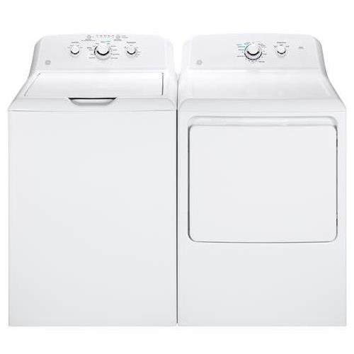 GE White Laundry Pair with GTW330ASKWW 27″ Top Load Washer and GTX33EASKWW 27″ Front Load Electric Dryer