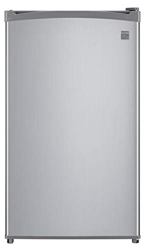 With the Kenmore 4. 4 Cubic Feet Compact Mini Fridge and Freezer Combo, you’ll be able to store excess food and drinks easily. The small refrigerator is portable and can be used at work under your desk, in the garage, or off at college in a dorm room. Features mechanical temperature control to keep cold storage items fresh. You’ll never have to worry about cold storage foods and drinks going bad. The freezer compartment is perfect for storing freezer items like frozen dinners, ice cream sandwiches, and frozen smoothie packs. Convenience features include 3 wire shelving racks that are easy to clean and can be removed to create customizable food storage. Store taller items like salad dressings and condiments in the convenient 2 liter door storage bins. With the clear crisper drawer, you’ll be able to spot and access your salad ingredients quickly. The egg shelf provides additional organization of your dairy items. Keep all of your cold and frozen foods stored neatly and conveniently with the Kenmore 4. 4 Cubic Feet Mini Fridge with Freezer Compartment.