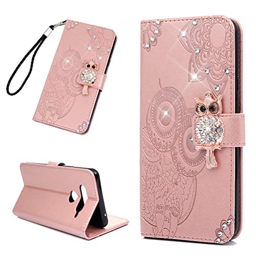 LG V40 ThinQ Case Sparkle Glitter Diamonds Owls Totem Wallet Case PU Leather Magnetic Flip Cover Shock Resistant Soft TPU Slim Protective Bumper Card Slots Kickstand Lanyard for LG V40 ThinQ Rose Gold