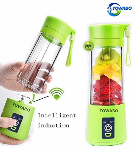 TOWABO USB Juicer Cup, Fruit Mixing Machine, Portable Personal Size Eletric Rechargeable Mixer, Blender, Water Bottle 380ml with USB Charger Cable Portable Juice Blender and Mixer